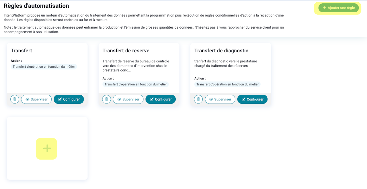 Le moteur d'automatisation a été pensé pour permettre de configurer des règles définissant des transformations à appliquer aux données reçues par les entités d'IntentPlatform.