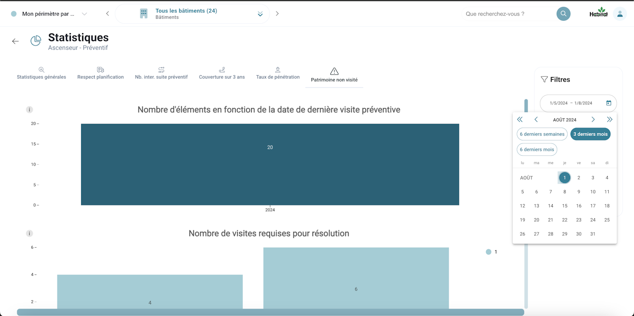 Des Périodes prédéfinies : "3 derniers mois", "6 dernières semaines", "6 derniers mois"