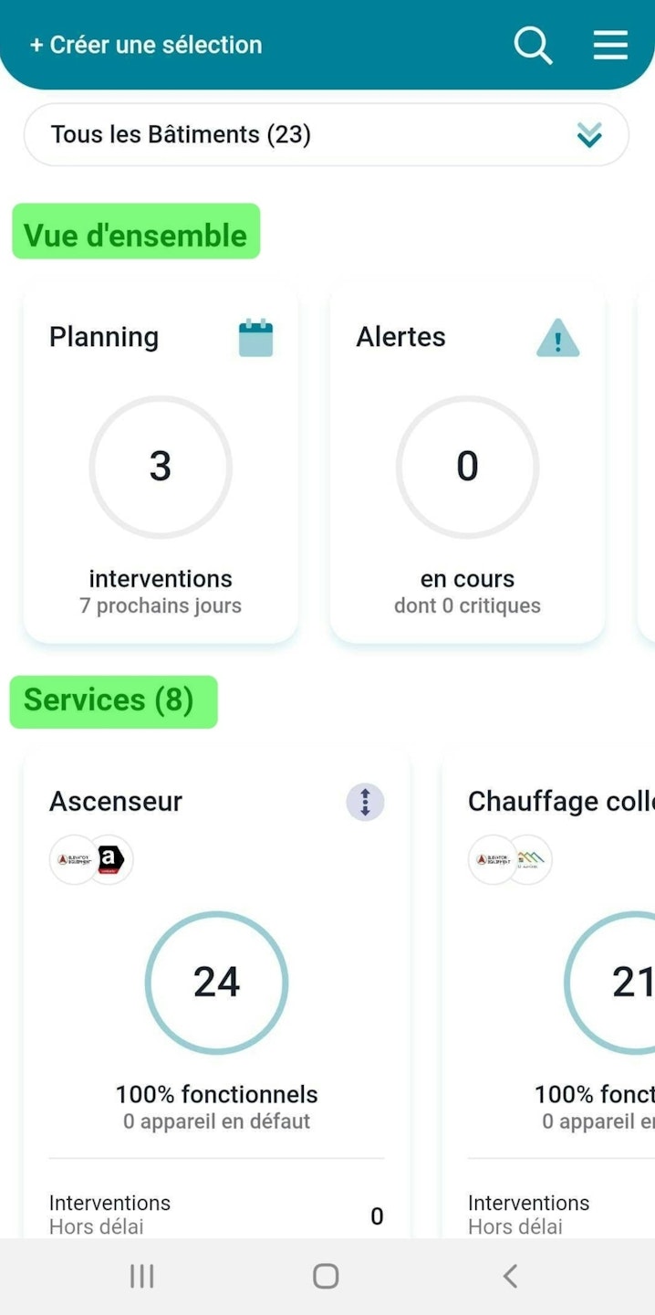 à une vue d'ensemble présentant les interventions prévues et les alertes en cours