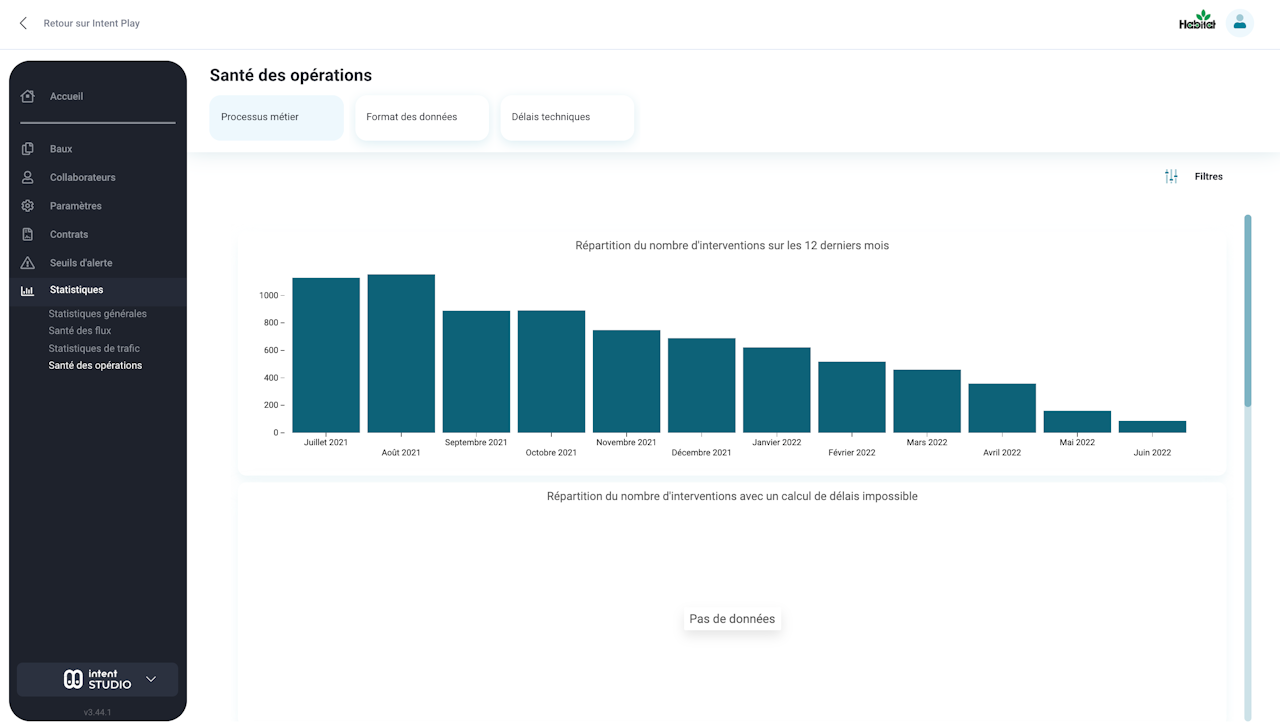 la répartition du nombre d'interventions avec un calcul de délais impossible