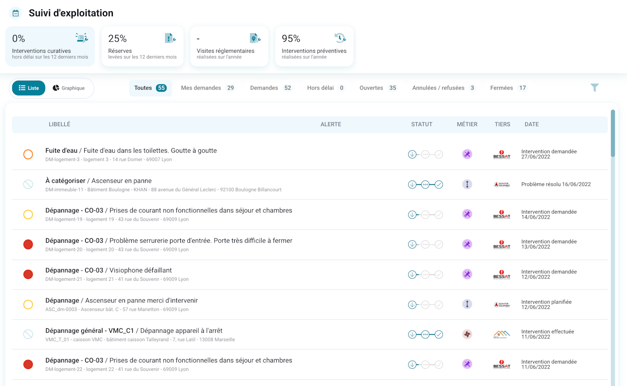 Interventions curatives - vue liste
